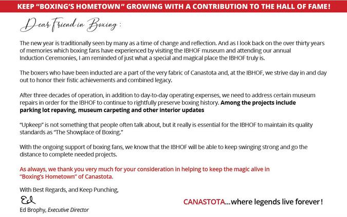 International Boxing Hall of Fame 1 Hall of Fame Drive Canastota, NY 13032 P: 315.697.7095 F: 315.697.5356