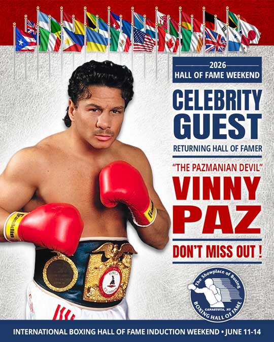 CANASTOTA, NY - MARCH 26, 2026 - The International Boxing Hall of Fame and Museum is pleased to announce that Hall of Famer “The Pazmanian Devil” Vinny Paz will return to Canastota for the 2026 Hall of Fame Weekend set for June 11-14.